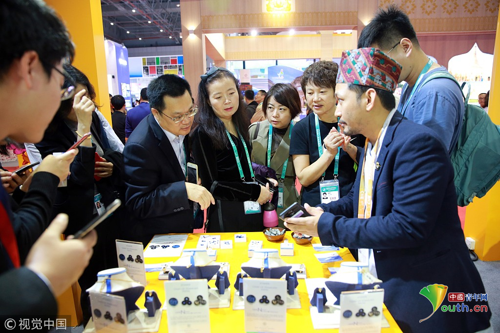 2018年11月6日,上海,首屆中國國際進(jìn)口博覽會國家展上,共有82個國家、3個國際組織設(shè)立了71個展臺。尼泊爾館。視覺中國