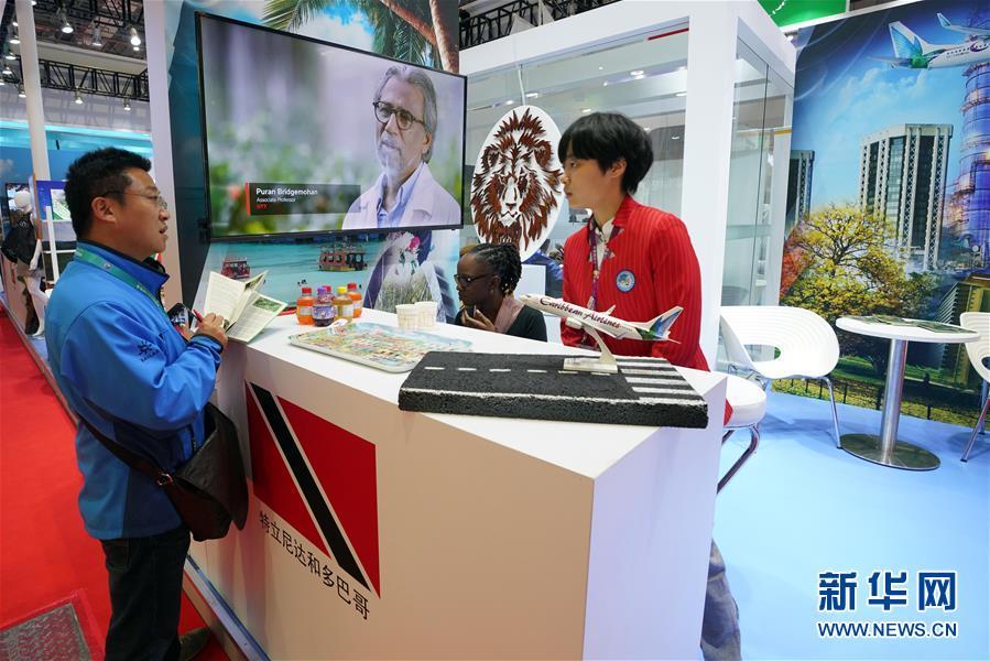 11月8日,在加勒比地區(qū)國(guó)家展區(qū)特立尼達(dá)和多巴哥展臺(tái),一名參觀者(左)與工作人員交談。 中國(guó)國(guó)際進(jìn)口博覽會(huì)11月5日在上海開(kāi)幕。國(guó)家貿(mào)易投資綜合展(國(guó)家展)是中國(guó)國(guó)際進(jìn)口博覽會(huì)的重要內(nèi)容,共有82個(gè)國(guó)家、3個(gè)國(guó)際組織設(shè)立71個(gè)展臺(tái)。 新華社記者 程麗 攝