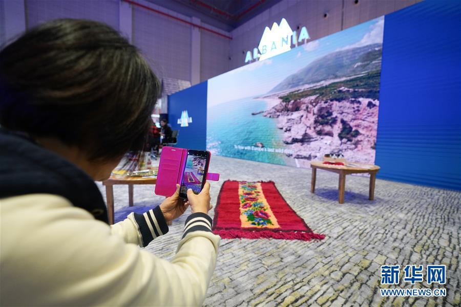 11月7日,在阿爾巴尼亞展區(qū),一名參觀者拍攝當(dāng)?shù)厣a(chǎn)的地毯。 中國(guó)國(guó)際進(jìn)口博覽會(huì)11月5日在上海開(kāi)幕。國(guó)家貿(mào)易投資綜合展(國(guó)家展)是中國(guó)國(guó)際進(jìn)口博覽會(huì)的重要內(nèi)容,共有82個(gè)國(guó)家、3個(gè)國(guó)際組織設(shè)立71個(gè)展臺(tái)。 新華社記者 王天聰 攝