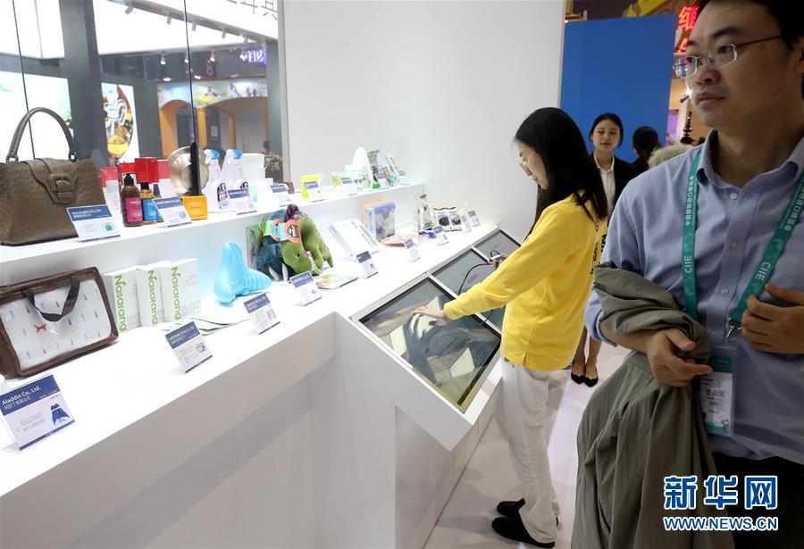 11月8日,人們?cè)诶蠐胝箙^(qū)參觀。 中國(guó)國(guó)際進(jìn)口博覽會(huì)11月5日在上海開(kāi)幕。國(guó)家貿(mào)易投資綜合展(國(guó)家展)是中國(guó)國(guó)際進(jìn)口博覽會(huì)的重要內(nèi)容,共有82個(gè)國(guó)家、3個(gè)國(guó)際組織設(shè)立71個(gè)展臺(tái)。 新華社記者 程麗 攝