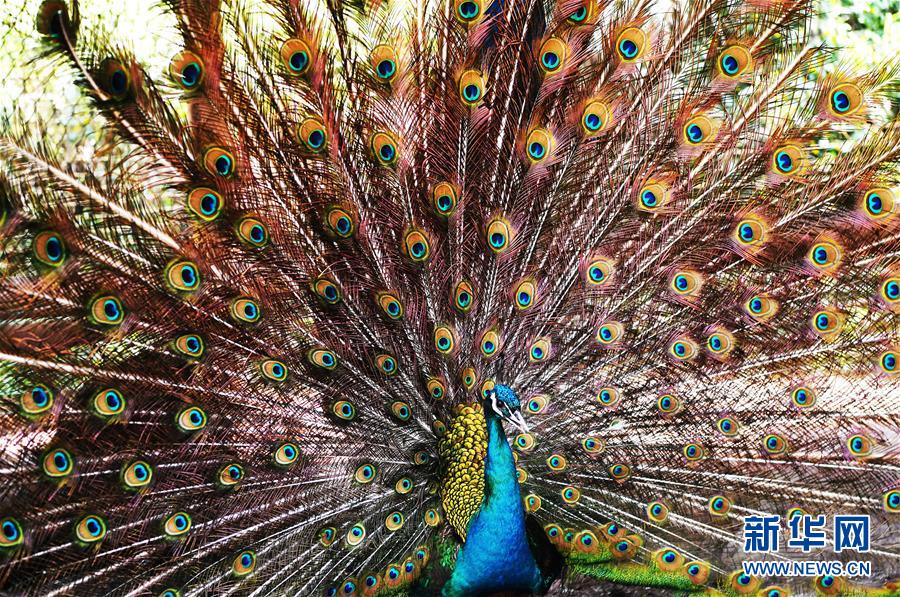 5月16日,在重慶市銅梁區(qū)永嘉鎮(zhèn)高龍村藍(lán)孔雀養(yǎng)殖場(chǎng)內(nèi),一只藍(lán)孔雀開屏。 新華社記者 王全超 攝