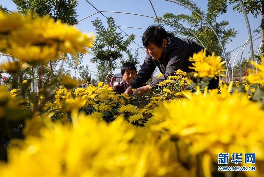 10月30日,武安市午汲鎮(zhèn)東河下村村民在采摘菊花。 新華社記者 王曉 攝