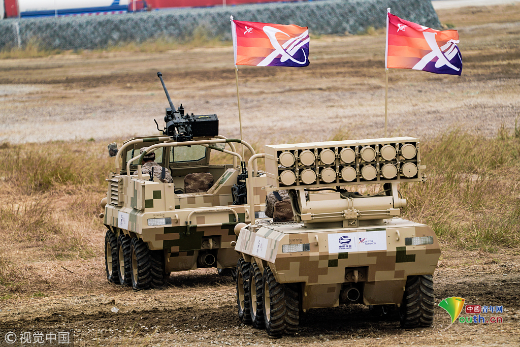 2018年11月8日,廣東珠海航展上,中國(guó)兵器集團(tuán)等組織地面的輪式即履帶式的武器裝備,進(jìn)行地面多種項(xiàng)目動(dòng)態(tài)展示。視覺中國(guó)