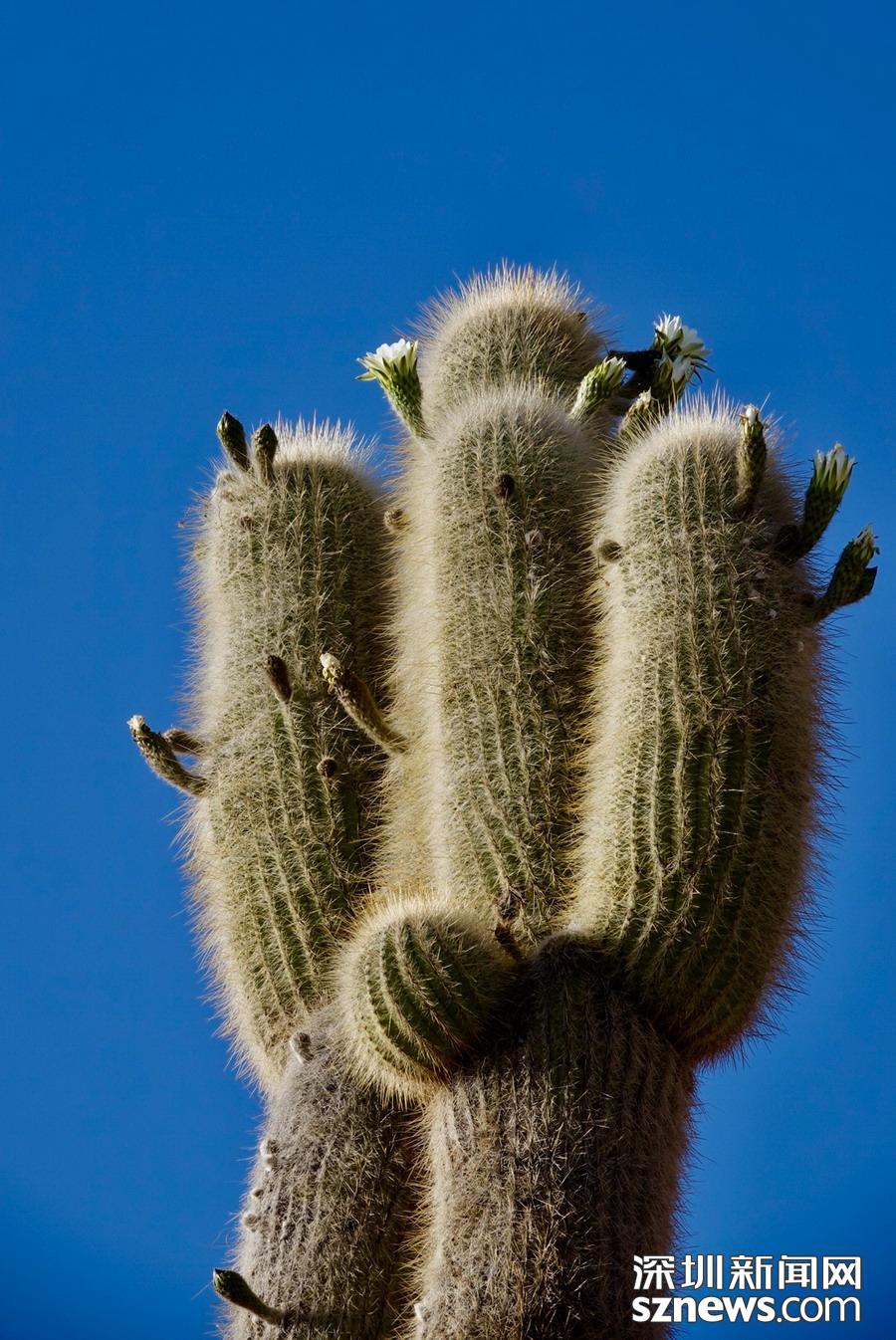 深圳新聞網(wǎng)訊 烏尤尼鹽沼中,有一個孤立的小山頭,猶如瀚海中的小島。島上長滿巨大的仙人柱,據(jù)說有的已經(jīng)生長了上千年。這種形狀各異、耐鹽堿、耐干旱的熱帶植物豐富了鹽沼的風(fēng)光,構(gòu)成絕無僅有的世界奇觀。 李仁奇 攝