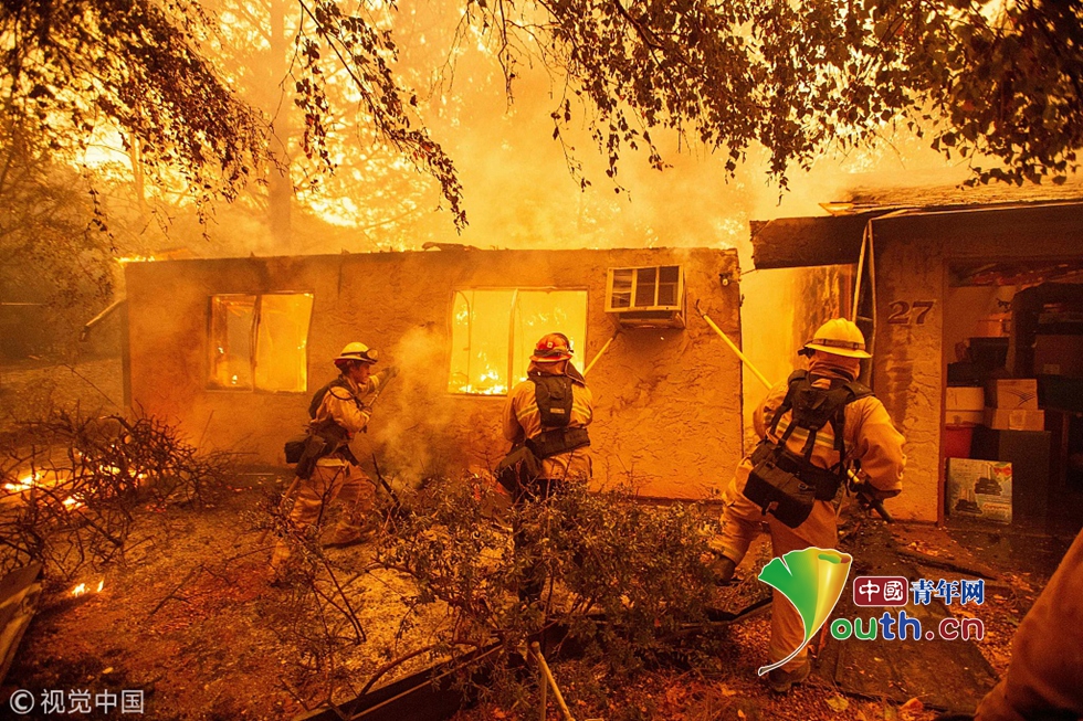 截至9日上午,山火的過(guò)火面積已經(jīng)達(dá)到240平方公里。山火不僅燒毀有2.7萬(wàn)居民的天堂鎮(zhèn),還對(duì)附近有9萬(wàn)人口的城市奇科構(gòu)成直接威脅。