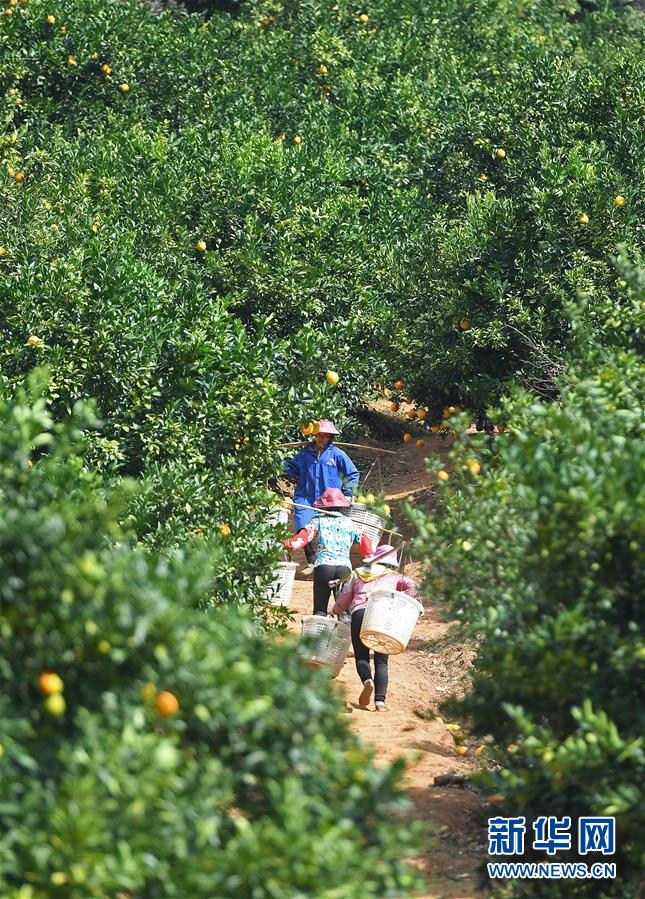 近日,江西省贛州市尋烏縣近20萬畝果園進入豐收采摘期,當地果農抓住晴好天氣開始采摘臍橙,果園一派繁忙景象。新華社記者 萬象 攝