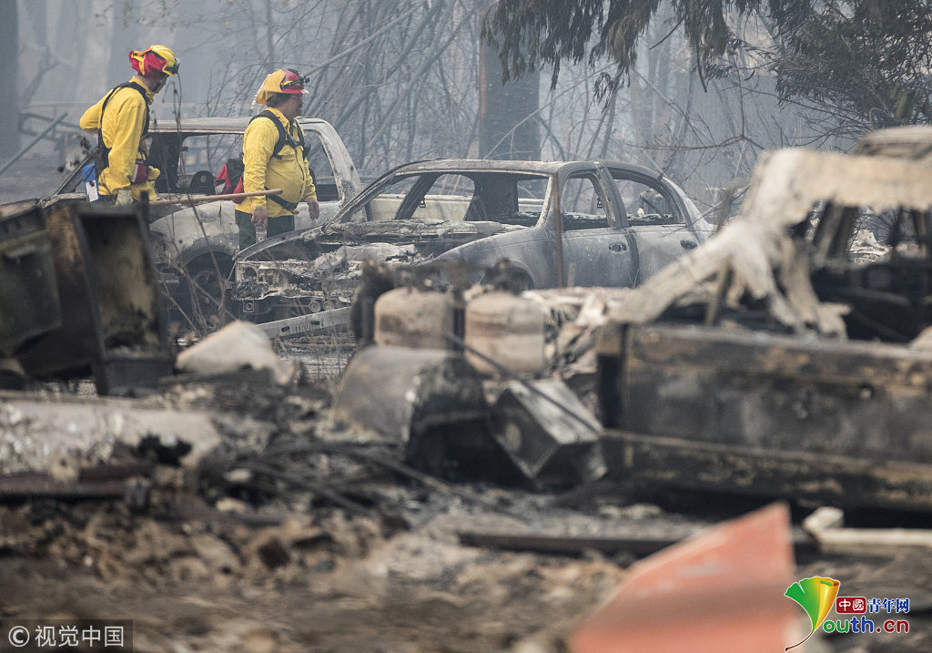 當?shù)貢r間2018年11月10日,美國加州Paradise,當?shù)厣交鹚僚埃瑸膮^(qū)民眾紛紛帶領(lǐng)家畜進行轉(zhuǎn)移。自本周三開始,加州多地發(fā)生山火,火勢蔓延迅猛,數(shù)萬人被迫撤離,數(shù)以萬計的房屋被燒毀。圖片作者:Jessica Christian