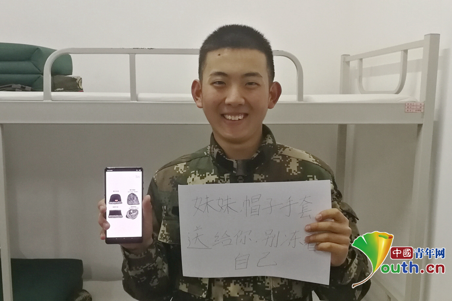 “俺們東北那旮瘩冬天特別冷,給妹妹買(mǎi)個(gè)防寒帽和棉手套,這樣上學(xué)就不會(huì)冷了?!蔽渚本┛傟?duì)執(zhí)勤第二支隊(duì)供圖。