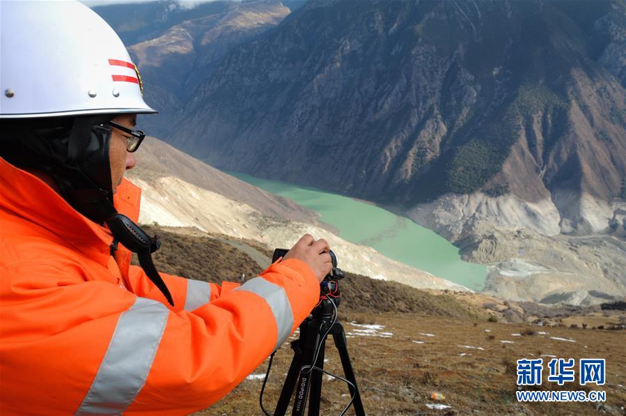 11月12日,西藏昌都市消防隊(duì)員從高點(diǎn)觀察泄流情況。新華社記者 堅(jiān)贊 攝