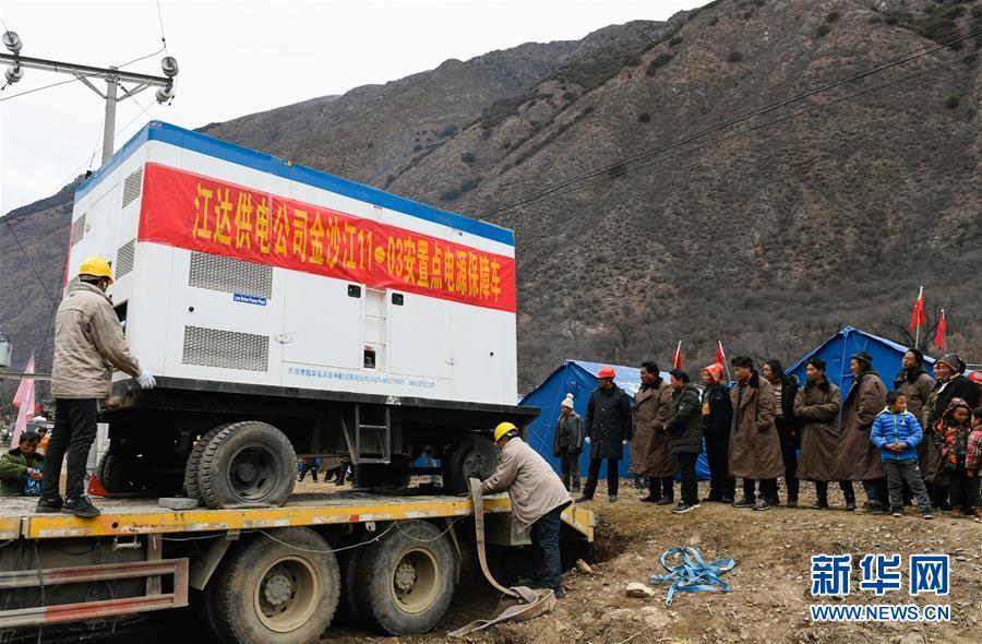 11月12日,國(guó)網(wǎng)江達(dá)縣供電公司工作人員將電源保障車運(yùn)至位于西藏昌都市江達(dá)縣波羅鄉(xiāng)境內(nèi)的康扎西安置點(diǎn),為群眾供電。 西藏自治區(qū)江達(dá)縣波羅鄉(xiāng)康扎西安置點(diǎn),離波羅鄉(xiāng)政府直線距離約3公里,位于一處地勢(shì)開(kāi)闊平緩的山谷中,比堰塞湖水面高出100多米。10月11日金沙江白格段山體滑坡發(fā)生后,當(dāng)?shù)鼐驮谶@里設(shè)立了安置點(diǎn),安置附近受災(zāi)群眾。 新華社記者 劉東君 攝