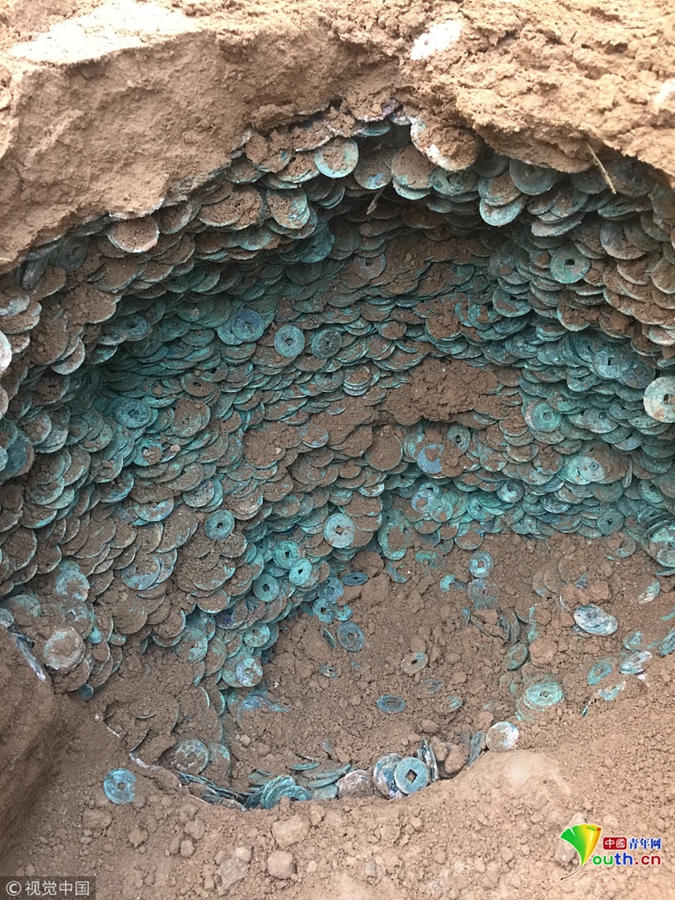2018年11月9日,陜西渭南,白水一工地發(fā)現(xiàn)大量古幣,共清理發(fā)掘古幣920斤、約10萬枚。經(jīng)初步鑒定,這些古幣多為北宋時期錢幣,初步判斷為一般文物,對研究當?shù)亟?jīng)濟等有一定價值。圖片:視覺中國。文字:華商報