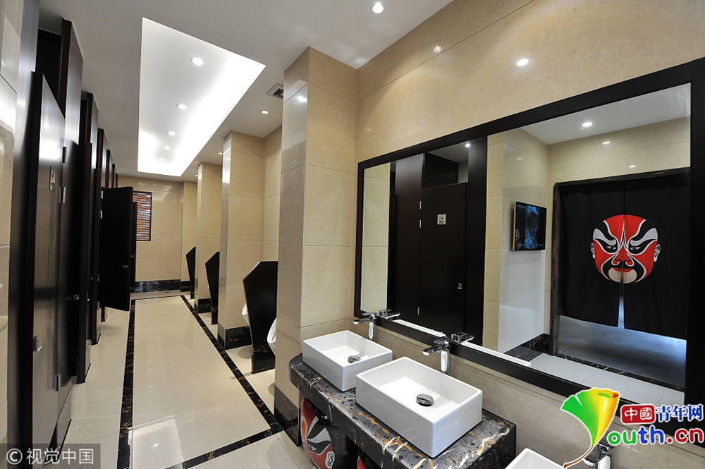 還設(shè)有第三衛(wèi)生間,是專為殘疾人、以及帶著小孩的父母?jìng)兲峁┑囊粋€(gè)私密空間。免費(fèi)上這樣超豪華、且復(fù)古又特有文藝范兒的公廁,能讓人感受到一種如“家”般的舒適,像是進(jìn)了五星級(jí)酒店似的。