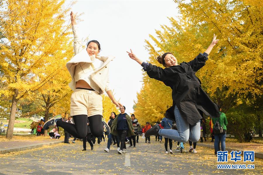 近日,沈陽農(nóng)業(yè)大學(xué)內(nèi)的銀杏樹進入最佳觀賞期,長達一千余米的金色“銀杏路”吸引了許多市民前去游覽,拍照。 新華社記者龍雷攝