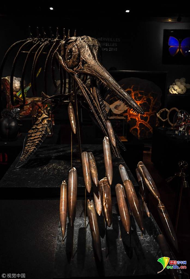 當(dāng)?shù)貢r(shí)間2018年11月19日,法國(guó)巴黎,在展出中的1.8億年前侏羅紀(jì)時(shí)期的恐龍骨架,將于11月20日在Drouot拍賣行拍賣。