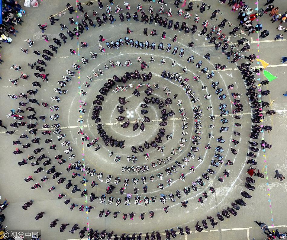 11月20日?qǐng)?bào)道,2018年11月19日,侗族同胞在參加貴州省從江縣慶云鎮(zhèn)“凍魚(yú)節(jié)”踩歌堂。(無(wú)人機(jī)拍攝)2018年11月19日,貴州省從江縣慶云鎮(zhèn)境內(nèi)的石姓侗族同胞迎來(lái)傳統(tǒng)一年一度的“凍魚(yú)節(jié)”,當(dāng)?shù)囟弊逋碇?jié)日盛裝舉行祭薩、踩歌堂、賽侗歌,慶祝豐收,祈福來(lái)年風(fēng)調(diào)雨順,五谷豐登。