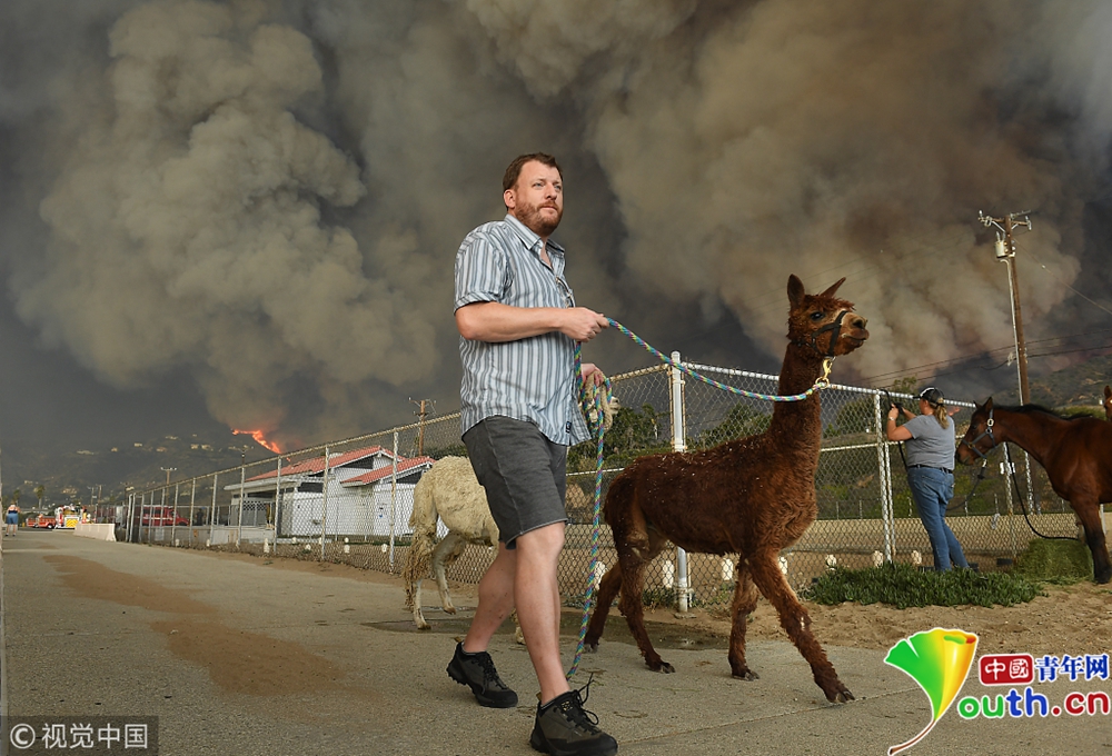 當(dāng)?shù)貢r(shí)間2018年11月10日,美國(guó)加州Paradise,當(dāng)?shù)厣交鹚僚埃瑸?zāi)區(qū)民眾紛紛帶領(lǐng)家畜進(jìn)行轉(zhuǎn)移。自本周三開(kāi)始,加州多地發(fā)生山火,火勢(shì)蔓延迅猛,數(shù)萬(wàn)人被迫撤離,數(shù)以萬(wàn)計(jì)的房屋被燒毀。圖片作者:Jessica Christian