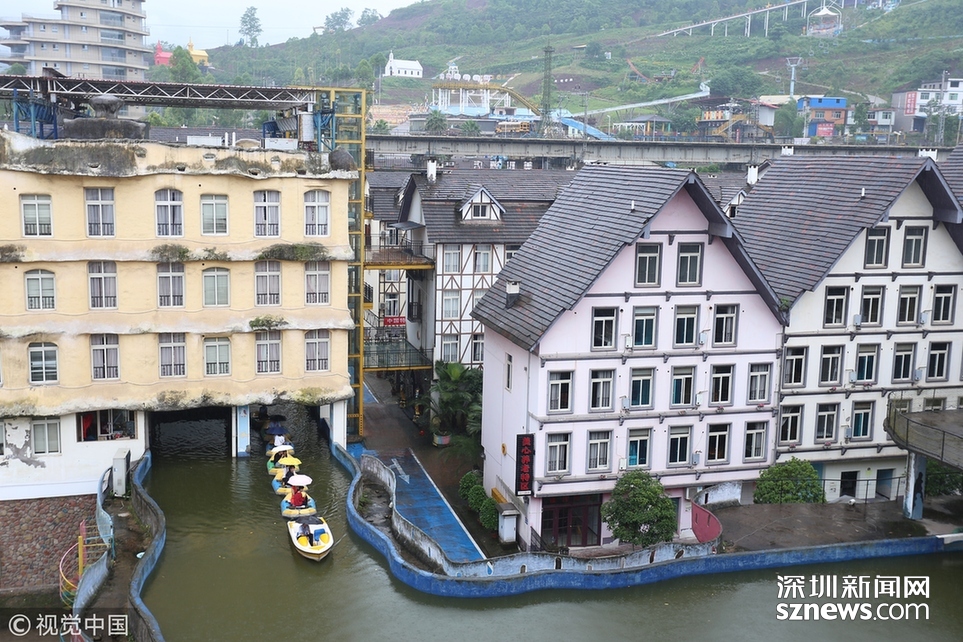 2018年6月20日,重慶涪陵,紅酒小鎮(zhèn)人工運(yùn)河全長(zhǎng)近5公里,2009年開建,先期依梨香溪岸線而建,后期隨著景區(qū)的發(fā)展,運(yùn)河逐漸拓展為高架橋的“空中運(yùn)河”,穿樓而過(guò)的“室內(nèi)運(yùn)河”,穿水上樂(lè)園而過(guò)的“水中運(yùn)河”。為確保一個(gè)水平面,運(yùn)河見房穿洞,過(guò)路搭橋,游客乘坐觀光船或蕩舟其中成為一道獨(dú)特的風(fēng)景線。隨著8D魔幻重慶的不斷走紅,該景區(qū)的網(wǎng)紅運(yùn)河正受到游客的喜愛與“打卡”。