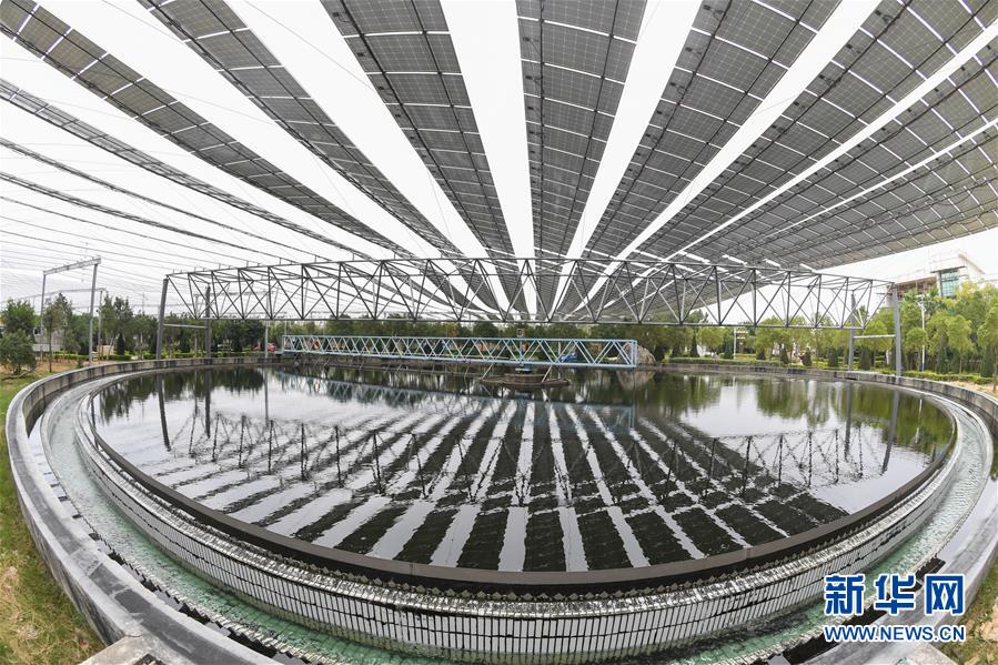 這是11月20日拍攝的福建省石獅市中心區(qū)城市污水處理廠處理池上的分布式光伏發(fā)電項(xiàng)目。 新華社記者 宋為偉 攝