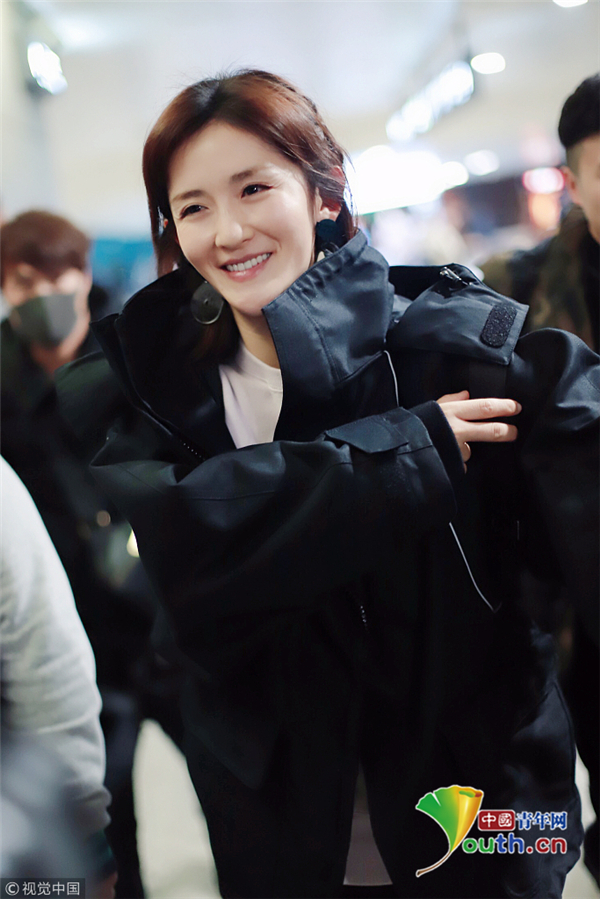 11月20日,湖南省長沙市,謝娜抵達(dá)長沙機場,一身黑衣酷感,遇到粉絲熱情揮手,她編著小辮露出甜笑,少女感爆棚!