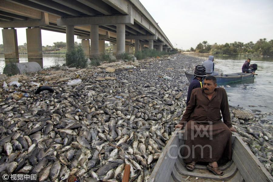 伊拉克河流一夜之間漂浮數(shù)萬(wàn)死魚(yú) 密密麻麻擠滿河道