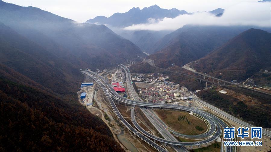 11月20日拍攝的水陽高速公路與包茂高速公路相接的樞紐互通式立交(無人機拍攝)。 近日,記者從陜西省交通建設集團公司了解到,陜西柞水至山陽高速公路已全線貫通即將通車。據(jù)介紹,(柞)水(山)陽高速公路全長78.8公里,開通后將實現(xiàn)包茂高速、福銀高速在陜南商洛地區(qū)的連接,開辟出秦嶺南麓的一條橫向高速大通道,對完善陜西高速公路路網(wǎng)結構、促進陜南區(qū)域經濟發(fā)展、加快山區(qū)群眾脫貧致富具有重要意義。 新華社記者劉瀟攝