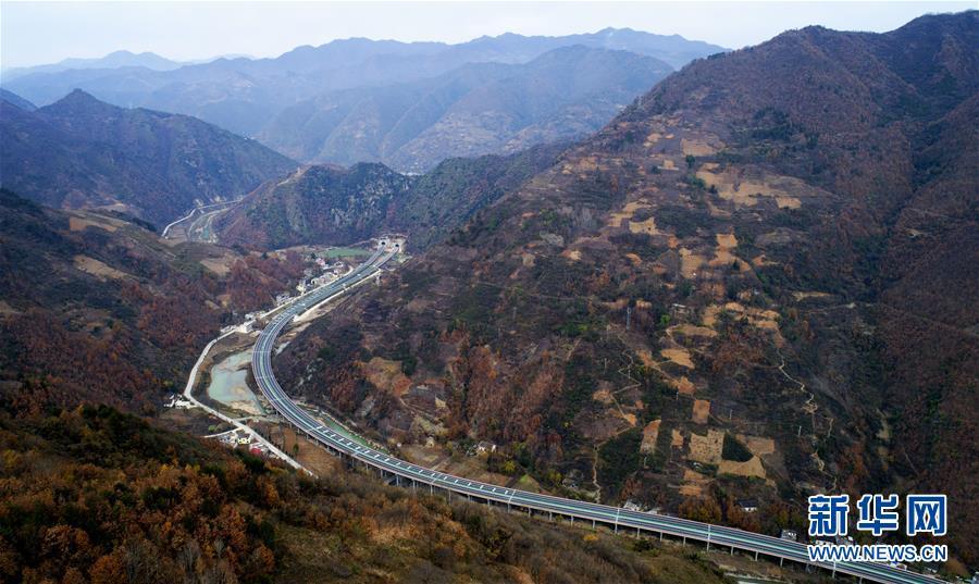 11月20日拍攝的水陽(yáng)高速公路黃家灣特大橋路段(無(wú)人機(jī)拍攝)。 近日,記者從陜西省交通建設(shè)集團(tuán)公司了解到,陜西柞水至山陽(yáng)高速公路已全線(xiàn)貫通即將通車(chē)。據(jù)介紹,(柞)水(山)陽(yáng)高速公路全長(zhǎng)78.8公里,開(kāi)通后將實(shí)現(xiàn)包茂高速、福銀高速在陜南商洛地區(qū)的連接,開(kāi)辟出秦嶺南麓的一條橫向高速大通道,對(duì)完善陜西高速公路路網(wǎng)結(jié)構(gòu)、促進(jìn)陜南區(qū)域經(jīng)濟(jì)發(fā)展、加快山區(qū)群眾脫貧致富具有重要意義。 新華社記者劉瀟攝