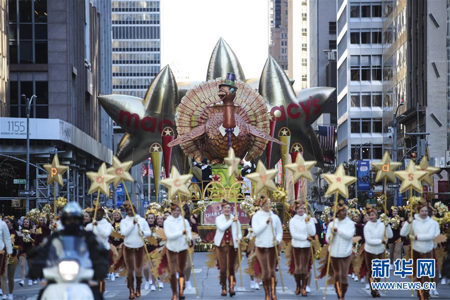 當(dāng)日,第92屆梅西感恩節(jié)大游行在紐約舉行,各式各樣的玩偶?xì)馇颉⒒ㄜ囮?duì)伍在曼哈頓的摩天大樓間穿行,吸引數(shù)百萬民眾前來觀看。梅西感恩節(jié)大游行始于1924年,是全美規(guī)模最大的感恩節(jié)游行。