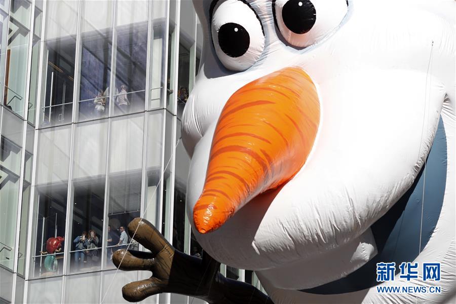 當(dāng)日,第92屆梅西感恩節(jié)大游行在紐約舉行,各式各樣的玩偶?xì)馇?、花車?duì)伍在曼哈頓的摩天大樓間穿行,吸引數(shù)百萬民眾前來觀看。梅西感恩節(jié)大游行始于1924年,是全美規(guī)模最大的感恩節(jié)游行。