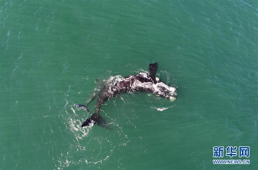 9月30日,在南非赫曼紐斯小鎮(zhèn)附近海面上,2頭南露脊鯨在海岸邊暢游。9月29日,位于開普敦以東約115公里的赫曼紐斯小鎮(zhèn)迎來2018年的鯨魚節(jié),來自世界各地的游客可乘船出海觀鯨,也可在岸邊等待鯨魚的到來。新華社記者陳誠(chéng)攝