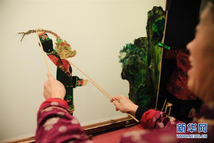 11月20日,在浙江海寧市南關(guān)廂歷史街區(qū),張坤榮在表演皮影戲。新華社記者黃宗治攝