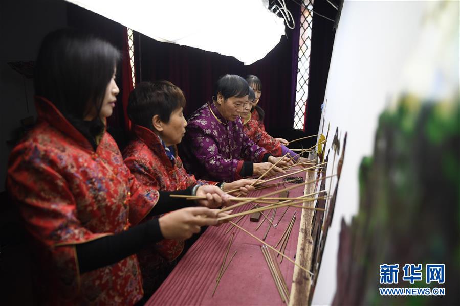 制作一個花束,最快也要15分鐘,復(fù)雜的需要半個小時甚至更長時間。圖為王黎媛和同事在制作花束。新華網(wǎng) 周亞平/攝念新洪/文