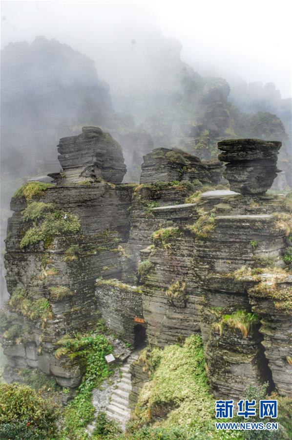 雨霧朦朧的梵凈山山頂風(fēng)光(2010年9月15日攝)。新華社記者劉續(xù)攝