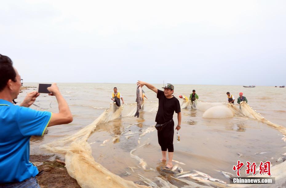 2018年6月26日,江蘇省常州市嘉澤鎮(zhèn)捕撈村的漁民組織夏季捕撈,一網(wǎng)魚達五萬余斤,以鰱魚為主,供應市場需求。夏捕的魚價較平時有所上漲,漁民粗略估計可增收上萬余元。