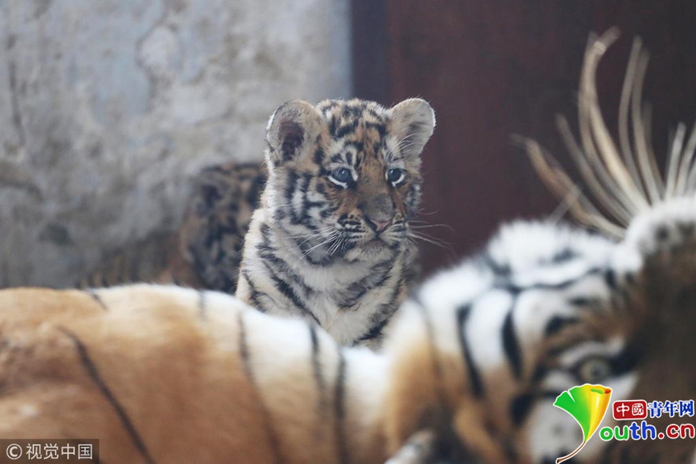 11月23日,出生一個多月的小東北虎和“虎媽”在一起。位于哈爾濱的黑龍江東北虎林園近日發(fā)布消息,該園2018年繁育計劃已經(jīng)完成,全年新增東北虎寶寶98只。