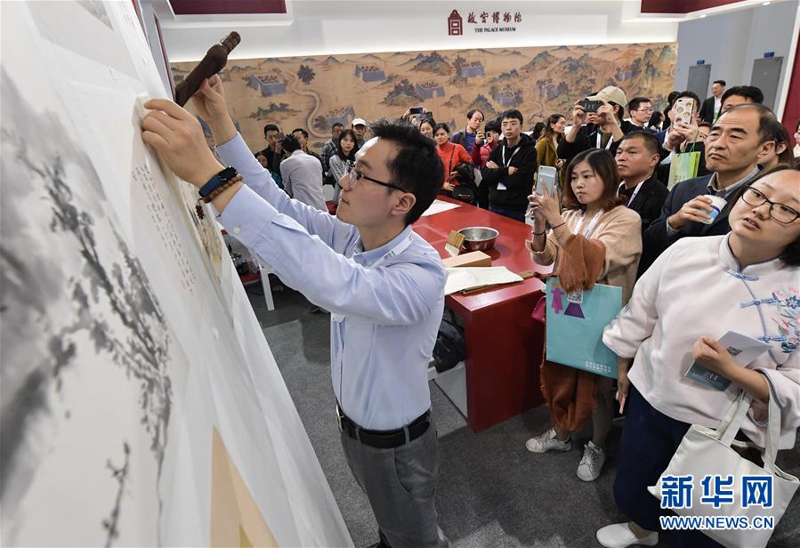 11月23日,來自故宮博物院的技師現(xiàn)場(chǎng)展示書畫裝裱技藝。新華社記者李賀攝