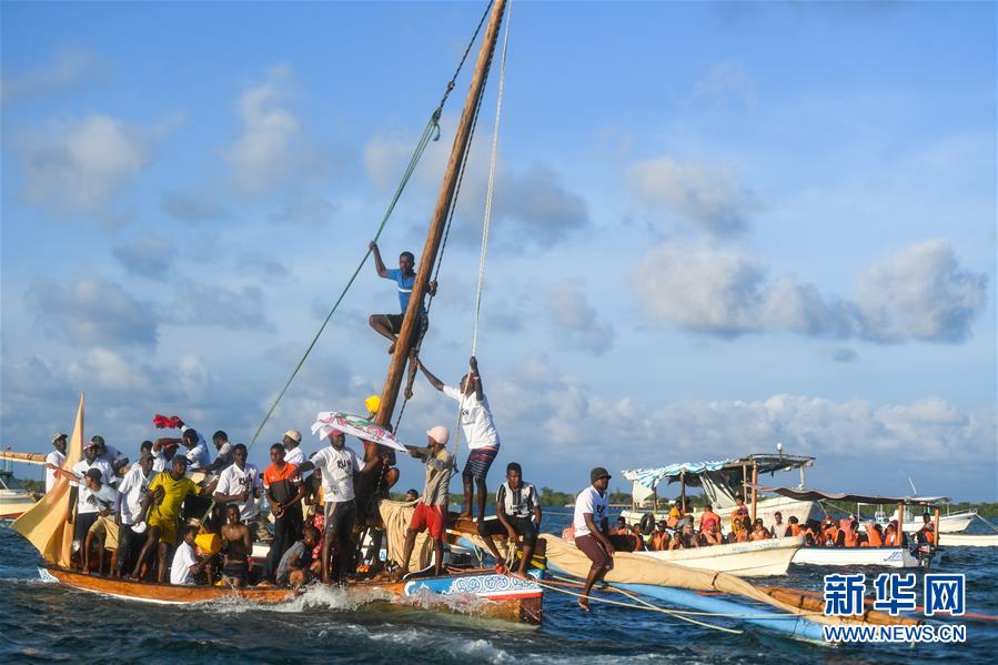 11月24日,在肯尼亞?wèn)|部印度洋上,贏得獨(dú)桅三角帆船比賽的拉穆居民慶祝勝利。這種帆船曾是東非海洋貿(mào)易的主要交通工具,拉穆本地居民至今還以能駕馭三角帆船為榮。
