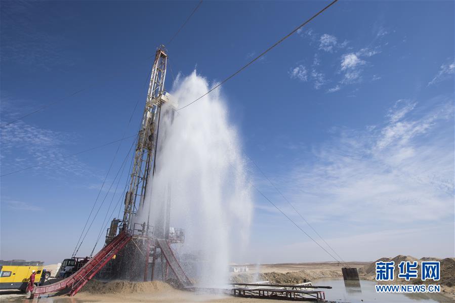 11月21日,在埃及明亞省,地下水從水管里噴涌而出。 2017年,中國中曼石油公司與阿聯(lián)酋海灣集團(tuán)簽訂合同,為該集團(tuán)在埃及沙漠中的大型農(nóng)業(yè)項目鉆探300口水井。根據(jù)合同,中曼石油將先期完成30口井的試鉆探,剩余水井將以每月7口的速度交付。目前有超過200名工人在鉆井現(xiàn)場作業(yè),大部分是埃及本地人。 新華社記者李碧念攝