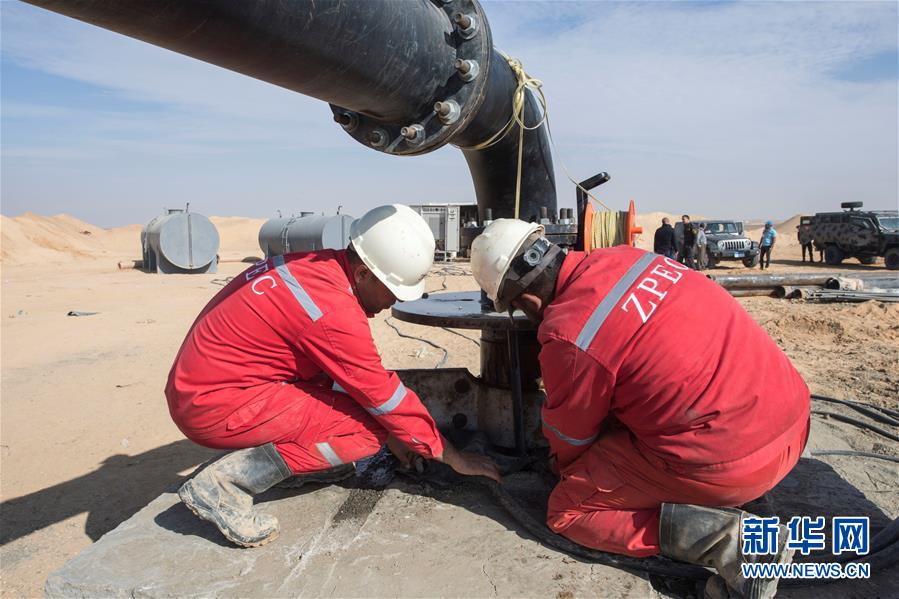 11月21日,在埃及明亞省,中國中曼石油公司的工人在鉆井現(xiàn)場作業(yè)。 2017年,中國中曼石油公司與阿聯(lián)酋海灣集團(tuán)簽訂合同,為該集團(tuán)在埃及沙漠中的大型農(nóng)業(yè)項(xiàng)目鉆探300口水井。根據(jù)合同,中曼石油將先期完成30口井的試鉆探,剩余水井將以每月7口的速度交付。目前有超過200名工人在鉆井現(xiàn)場作業(yè),大部分是埃及本地人。 新華社記者李碧念攝