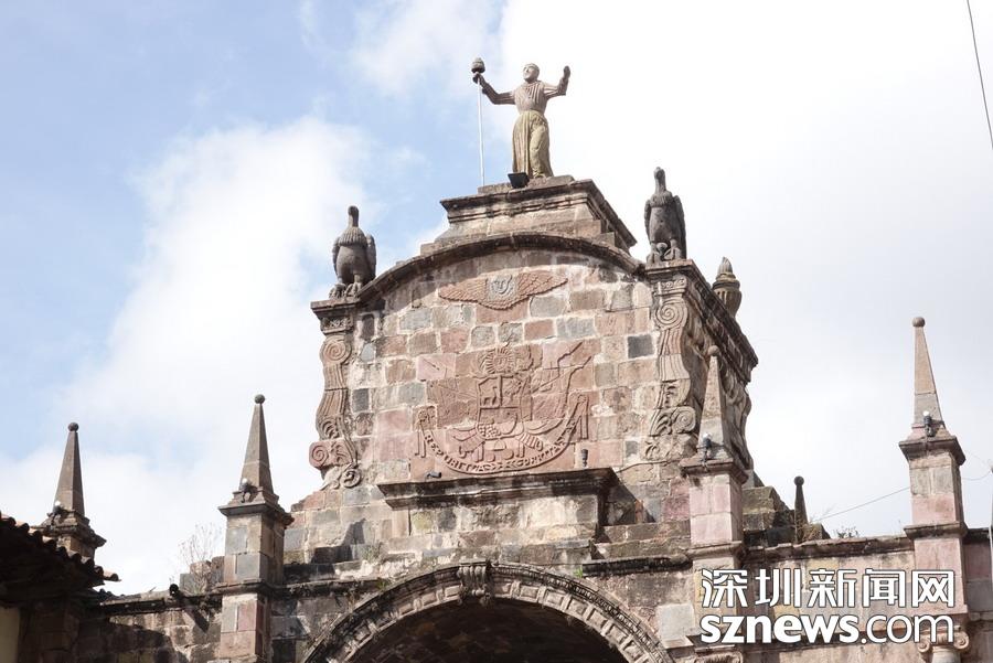 后來西班牙殖民者又修建了大批屋舍,兩種建筑風(fēng)格融合,被譽(yù)為西班牙—印加的獨(dú)特建筑方式。中心是武裝部隊(duì)廣場(chǎng),正中聳立著一位印第安人的全身雕像。李仁奇攝