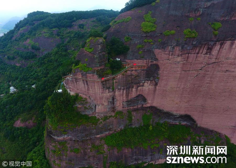 深圳新聞網(wǎng)訊  武義縣大紅巖景區(qū)在227500平方懸崖上建造的玻璃桟道,通過有關(guān)部驗(yàn)收,10月1日將開放接待游客。武義縣大紅巖是國家級(jí)風(fēng)景名勝區(qū),今年景區(qū)利用長(zhǎng)650米、高350米的懸崖峭壁建造玻璃桟道,為景區(qū)又增添了一道壯觀的景點(diǎn)。
