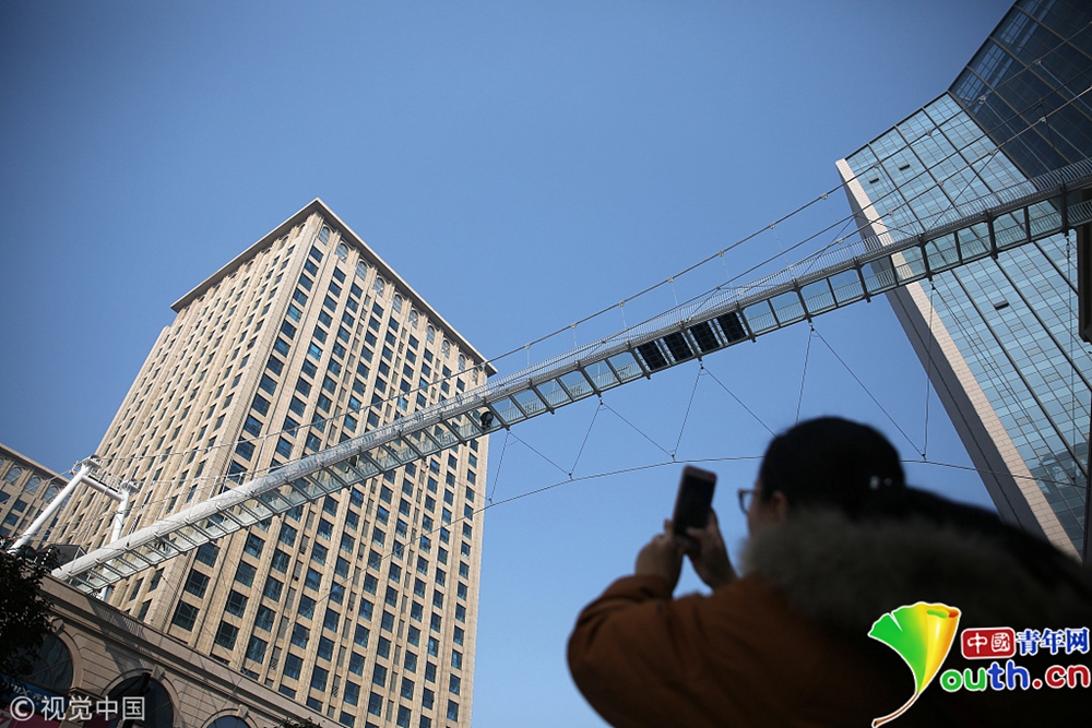 這座玻璃吊橋位于石家莊南二環(huán)附近,橋體橫跨塔通大街,長100米,高30米,。橋面由52塊特質(zhì)玻璃構(gòu)成,其中4塊為特效玻璃,游客腳踩上去就會(huì)發(fā)出玻璃破裂的聲音。