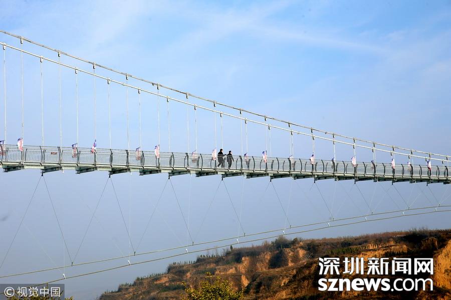 深圳新聞網(wǎng)訊 河南三門峽,位于陜州地坑院景區(qū)玻璃天橋。該項(xiàng)目橋梁總投資2600萬(wàn)元,全長(zhǎng)368米,寬3米,高108米,是目前河南省內(nèi)最長(zhǎng)的玻璃天橋,還將陸續(xù)對(duì)外開(kāi)放夜景效果、聲光效果以及更多的體驗(yàn)效果,逐步打造成整個(gè)豫西地區(qū)乃至全省的旅游打卡新地標(biāo)。
