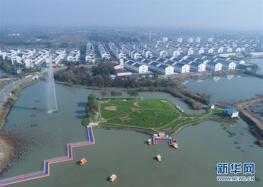 11月28日,空中俯瞰林城鎮(zhèn)北湯村的施家邊河水上樂園(無人機拍攝)。近年來,北湯村全面推進“五水共治”,停止河道內(nèi)的水產(chǎn)養(yǎng)殖,并進行河道清淤,整治周邊環(huán)境,另外還結(jié)合北湯生態(tài)園旅游項目,發(fā)展旅游經(jīng)濟,打造水上娛樂設(shè)施?,F(xiàn)在北湯村施家邊河水質(zhì)清澈,環(huán)境秀美,每年為北湯村吸引游客18萬人次。 新華社記者 徐昱 攝