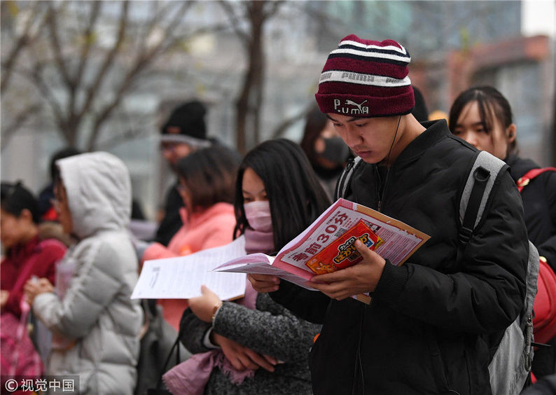 2018年12月2日,北京,在呼家樓中學(xué)考場(chǎng),考生正在抓緊時(shí)間進(jìn)行復(fù)習(xí)。北京青年報(bào) 郝羿/視覺(jué)中國(guó)
