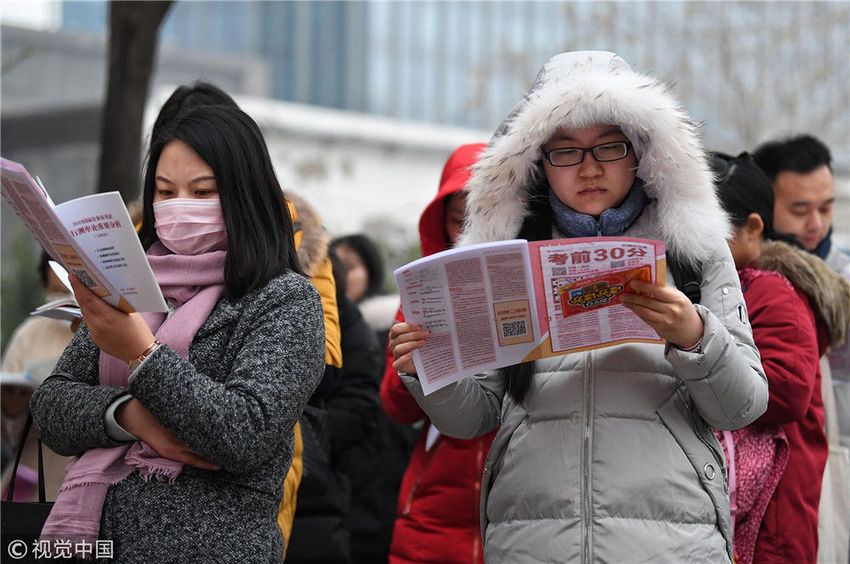 2018年12月2日,北京,在呼家樓中學(xué)考場,考生正在抓緊時間進行復(fù)習(xí)。北京青年報 郝羿/視覺中國