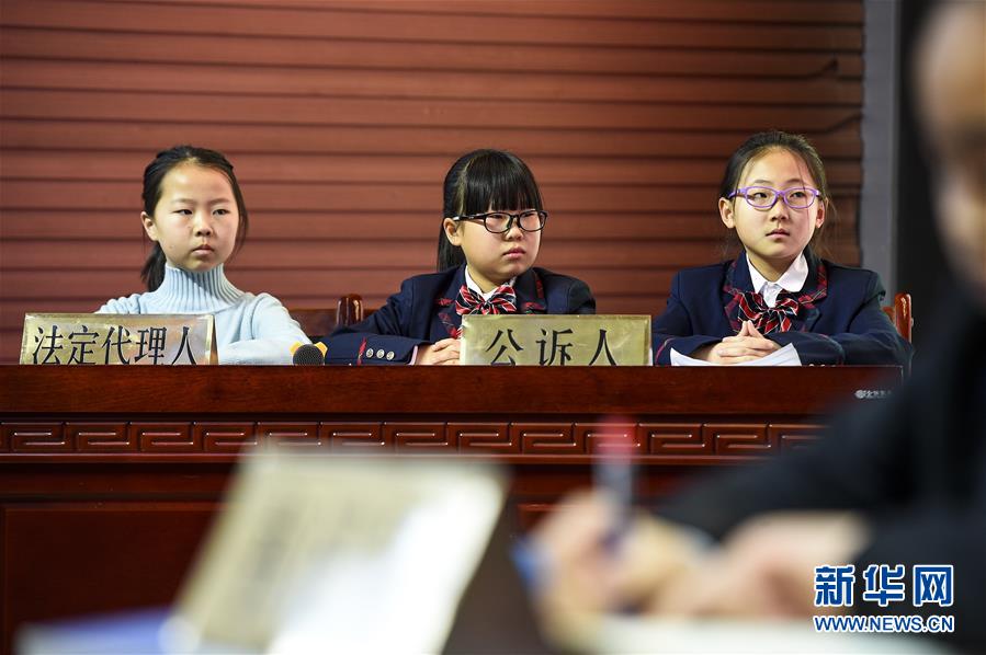 12月3日,銀川市實(shí)驗(yàn)小學(xué)的學(xué)生在憲法日主題活動(dòng)中體驗(yàn)?zāi)M法庭。國家憲法日到來之際,各地學(xué)校紛紛舉辦主題宣講活動(dòng),對學(xué)生開展法治教育,幫助孩子們了解憲法知識。新華社發(fā)(馮開華 攝)