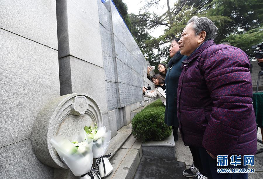 12月3日,南京大屠殺幸存者石秀英(右)率家屬在死難者名單墻前憑吊被侵華日軍殺害的親人。 當(dāng)日,在第五個(gè)南京大屠殺死難者國(guó)家公祭日到來(lái)之際,南京大屠殺死難者遺屬家祭活動(dòng)在侵華日軍南京大屠殺遇難同胞紀(jì)念館正式啟動(dòng)。首批前來(lái)開(kāi)展家祭活動(dòng)的南京大屠殺幸存者余昌祥、石秀英老人分別率家屬在紀(jì)念館內(nèi)的死難者名單墻前獻(xiàn)花、敬香、跪拜,并誦讀家信,表達(dá)對(duì)親人的哀思。 新華社記者 孫參 攝
