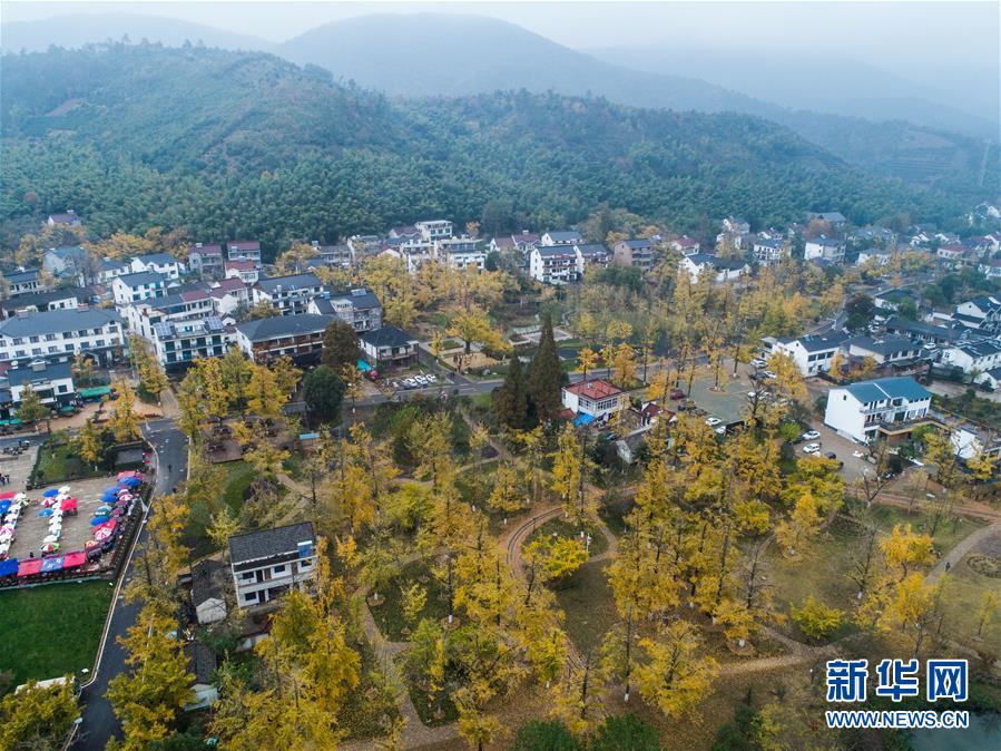 空中俯瞰十里銀杏林長(zhǎng)廊(11月16日無(wú)人機(jī)拍攝)。近日,在浙江省長(zhǎng)興縣小浦鎮(zhèn),“十里銀杏長(zhǎng)廊”和近千畝花海經(jīng)過(guò)近一年的升級(jí)改造后,以嶄新的面貌與游客見面?;ê?、觀光小火車、古村民宿、銀杏長(zhǎng)廊等旅游項(xiàng)目全面提升了小浦鎮(zhèn)鄉(xiāng)村旅游的品質(zhì)。新華社記者 徐昱 攝