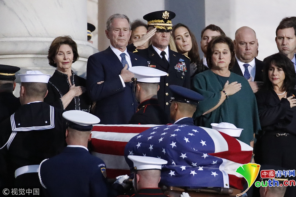 老布什靈柩安放在國會圓形大廳 小布什出席儀式