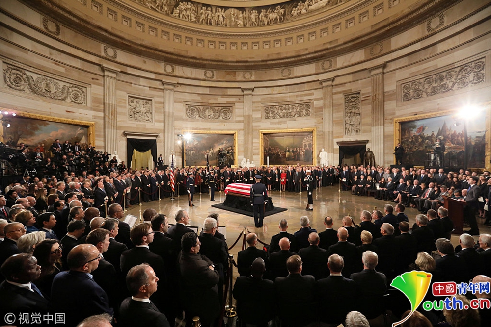 美國歷史上,只有33名逝者的遺體擺放在國會(huì)大廈圓形大廳內(nèi)供人們瞻仰,包括從“一戰(zhàn)”到“越戰(zhàn)”期間的11位總統(tǒng)以及不知名士兵。
